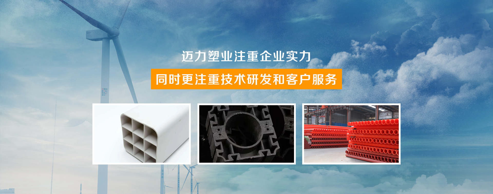 無錫邁力塑業科技有限公司地處長江三角洲蘇錫常經濟發達區,坐落于江南名鎮--華士鎮,緊鄰天下第一村“中國華西村”,緊靠沿江高速華西道口,距上海130公里、南京150公里,地理位置優越,交通十分便捷。       本廠創辦于2010年,全廠職工總數為42名,工程師技術人員5名,擁有國內先進的錐形雙螺桿、單螺桿擠出生產線9條,是專業生產PE頂管、PVC-U埋地式普通電力電纜管套、PVC-C高壓電纜套管、MPP電纜套管等管材、管件、BWFRP電纜管拉擠纏繞管。       本廠研制生產的埋地電力通訊電...